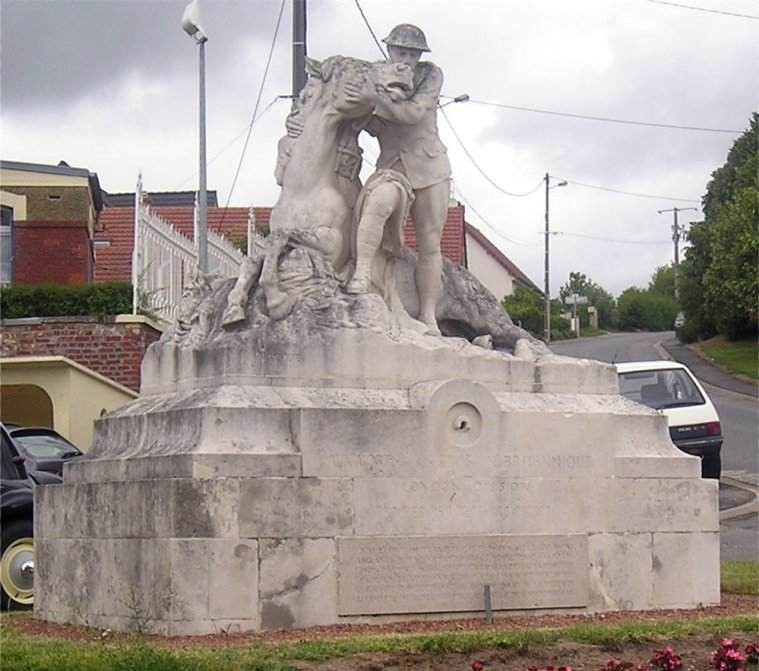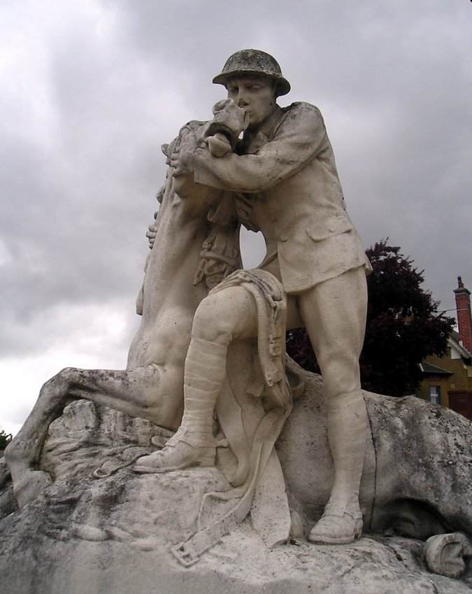 Il s’agit d’une sculpture représentant un artilleur britannique qui tient dans ses bras la tête de son cheval blessé.