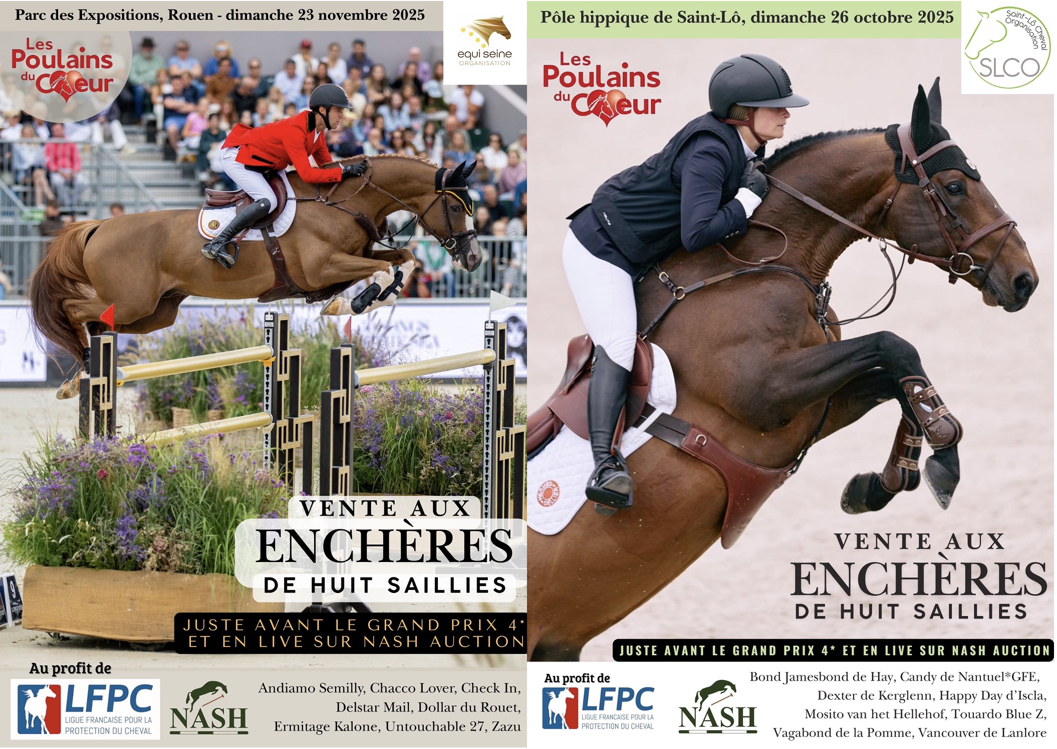 En 2025, la cause retenue est celle de la Ligue française pour la protection du cheval (LFPC). Deux rendez-vous majeurs sont prévus : à Saint-Lô le 26 octobre, à Rouen le 23 novembre. La première vente, dimanche 26 octobre à Saint-Lô, aura lieu en amont du Grand prix CSI 4* de la région Normandie. La plateforme Nash Auction présente déjà le catalogue des saillies qui seront mises aux enchères lors de ce temps fort solidaire.
